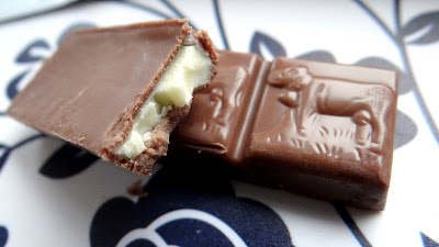 Czekolada pachnie jeszcze nim wyjmiemy ją z papierka. Jest słodka i bardzo mleczna. Nie jest jej jednak zbyt wiele, ale takie też jest założenie tego produktu, że musi być jeszcze miejsce na nadzienie.