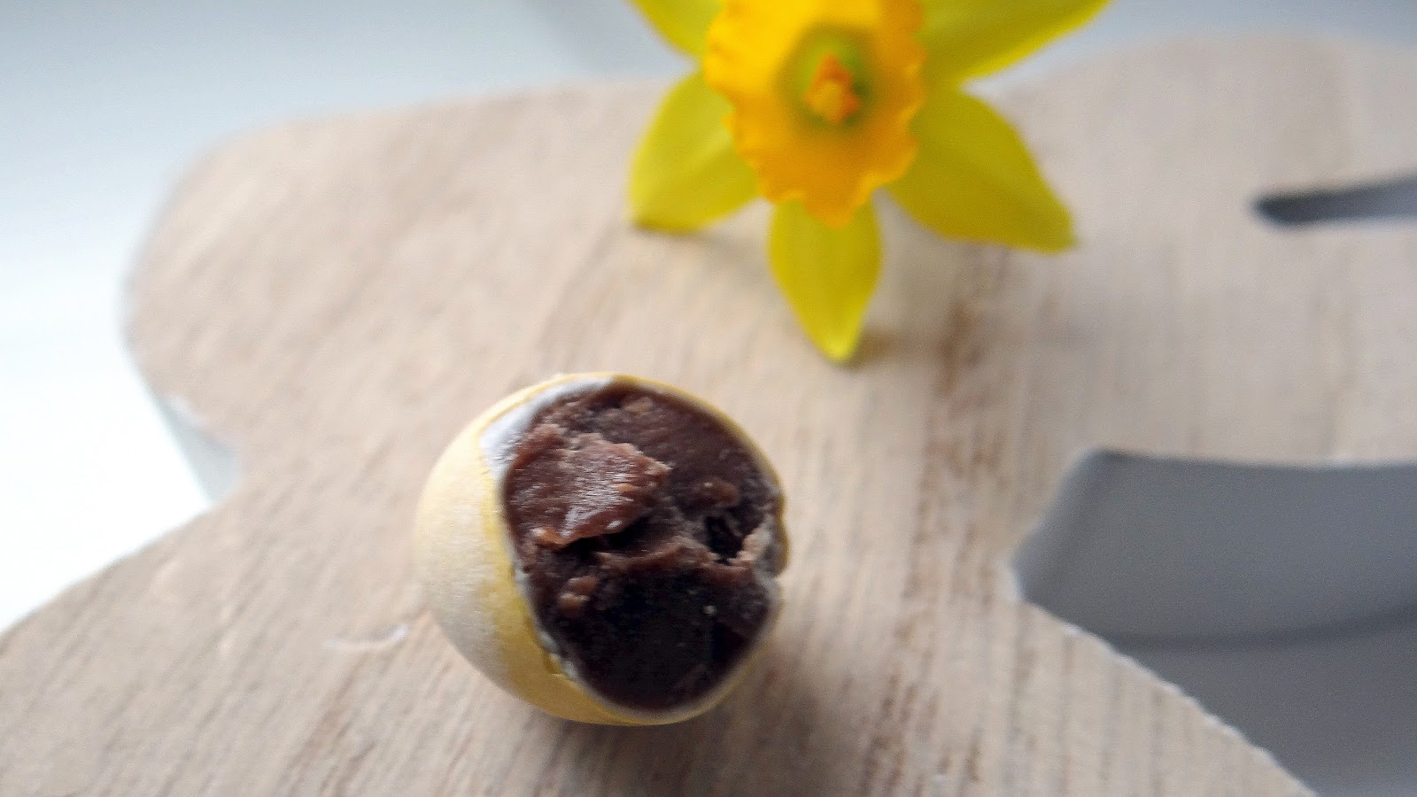 Smakiem jajeczko przypomina mi powiększonego Lentylka.Nie jestem fanką takich przysmaków. Było spoko, ale zbyt twardo, całość skoruki po nagryzieniu trzeszczała a spotkanie z dziąsłem sprawiało, że nagryzanie stawało się nawet bolesne.