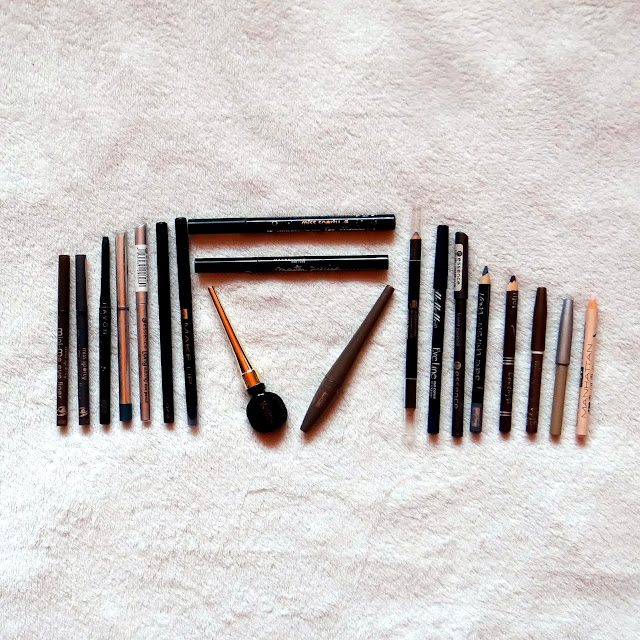 W środku zdjęcia znajdują się lajnery :) U góry poziomo ułożone to eyelinery w pisaczkach. Wyjątkowe dzięki stabilnej i wygodnej formie. Jeden to