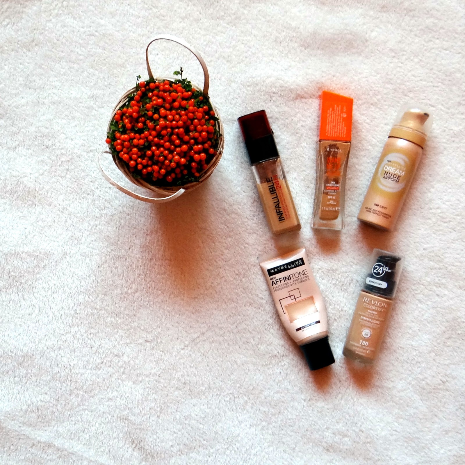 Maybelline Afinitone to podkład zachwalany przez koleżanki, aż w końcu wylądował u mnie w spadku po babci. Jest raczej lekki, wodnisty, za to dobrze kryje, jednak czasem zostawia smugi, również z tego powodu rezerwuję go na dni gdy nie muszę się pokazywać zbyt szerszej publiczności.