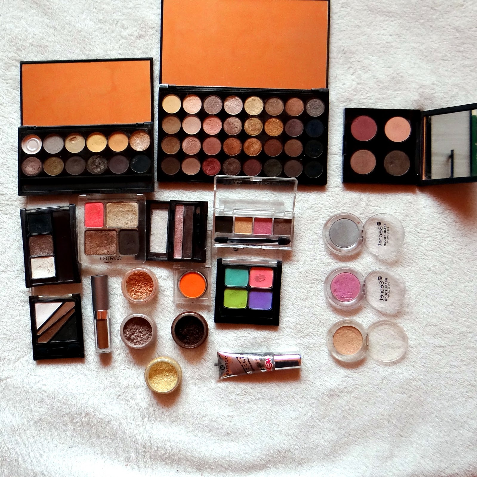 słoiczkach moje ulubione sypkie, pyłkowe cienie z mySecret. Neonowe kolory to również ta sama marka, są soczyście napigmentowane i bardzo odważne ;) W