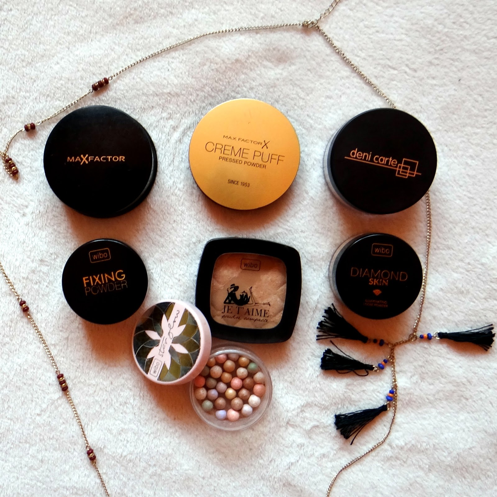 Max Factor, świetny sypki puder, równomiernie pokrywa i posiada w zestawie fajnego puchacza do nakładania, ale po jakimś czasie wyszła z niego poszewka więc obecnie stosuję wyłącznie do pędzla :)