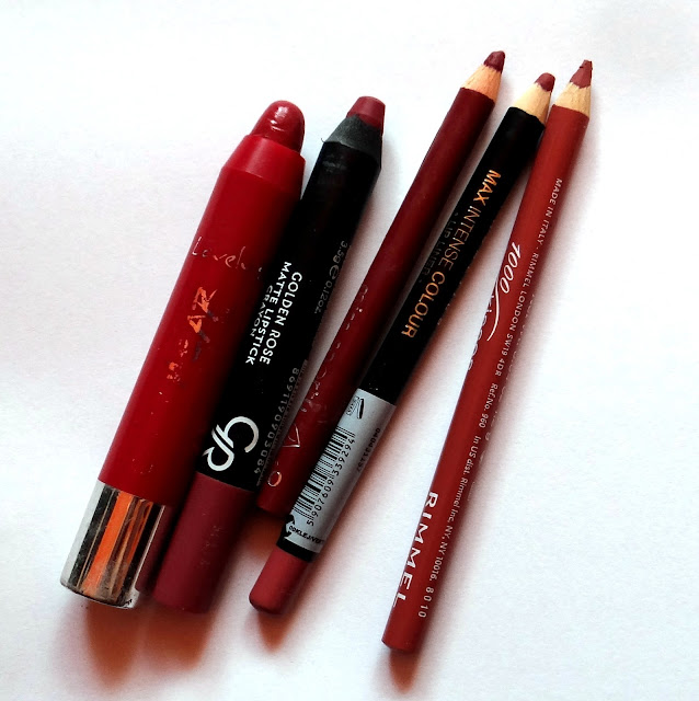 Konturówka Rimmel - jak widzicie wszystkie konturówki mają podobny odcień. Mam ich tylko trzy a i tak sporadycznie używam, mam duże usta a podkreślone stają się tandetne :D