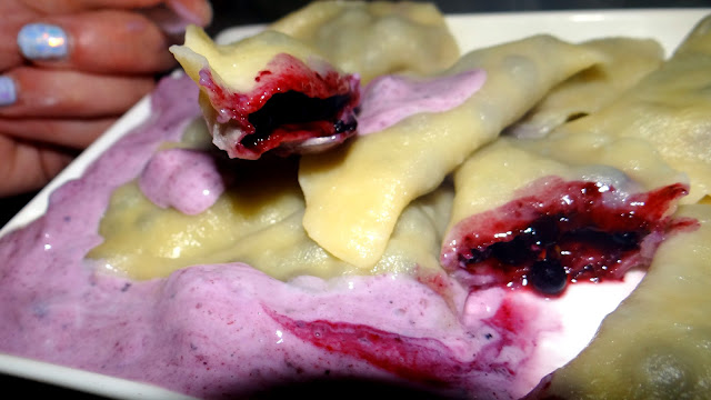 Pierogi z jagodami i sosem jogurtowo-jagodowym