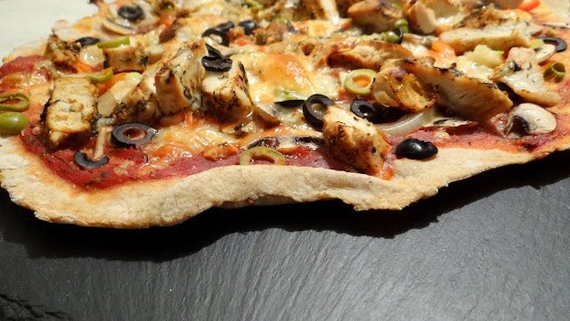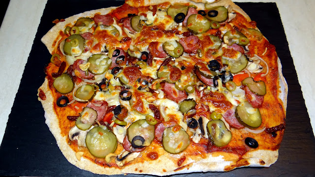 Pizza jest ultra cienka ale sztywna i twarda. Pysznie chrupie a przy tym dzielnie znosi obciążenie wieloma składnikami. Domownicy orzekli: lepsza od poprzedniej.