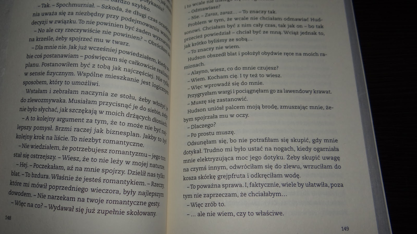 bardzo przypadła mi do gustu. Brakowało mi w literaturze i trylogiach takiego czystego i trochę powszedniego uczucia miłości i seksu, bez wszystkich perwersyjnych doznań, biczów i gadżetów rodem z s-f.