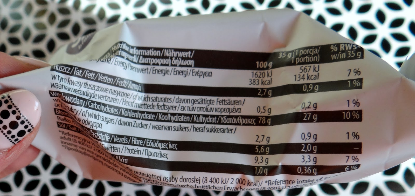 7 extra cienkich wafli co daje 35 g. Z drugiej strony informacje takie jak na wielu innych produktach.