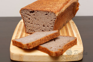 Keksówkę wyłóż papierem do pieczenia. Przełóż powstałą masę. Wstaw do zimnego piekarnika na 8 godzin. Po tym czasie włącz piekarnik na 200 st. i piecz ok. 60 minut.