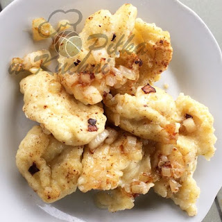 Podawaj tak, jak lubisz. Ja przygotowałam okrasę z wędzonej słoninki i cebulki. Będą pyszne z gulaszem lub sosem grzybowym. Dzieciakom smakują też z masełkiem i cukrem.