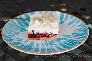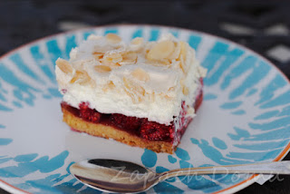 Dziś będę Was wodzić na pokuszenie... Ciastem, które warte jest każdej poświęconej mu minucie... Ciastem, które łączy w sobie wszysto, co najlepsze - soczyste i aromatyczne maliny, masę serowo-śmietankową oraz chrupiącą bezę... Przepis podkradłam stąd :)