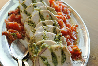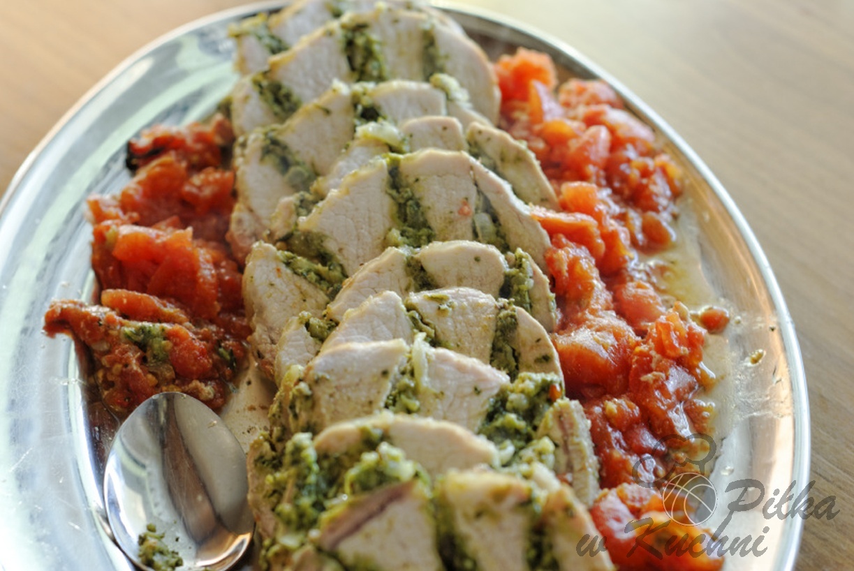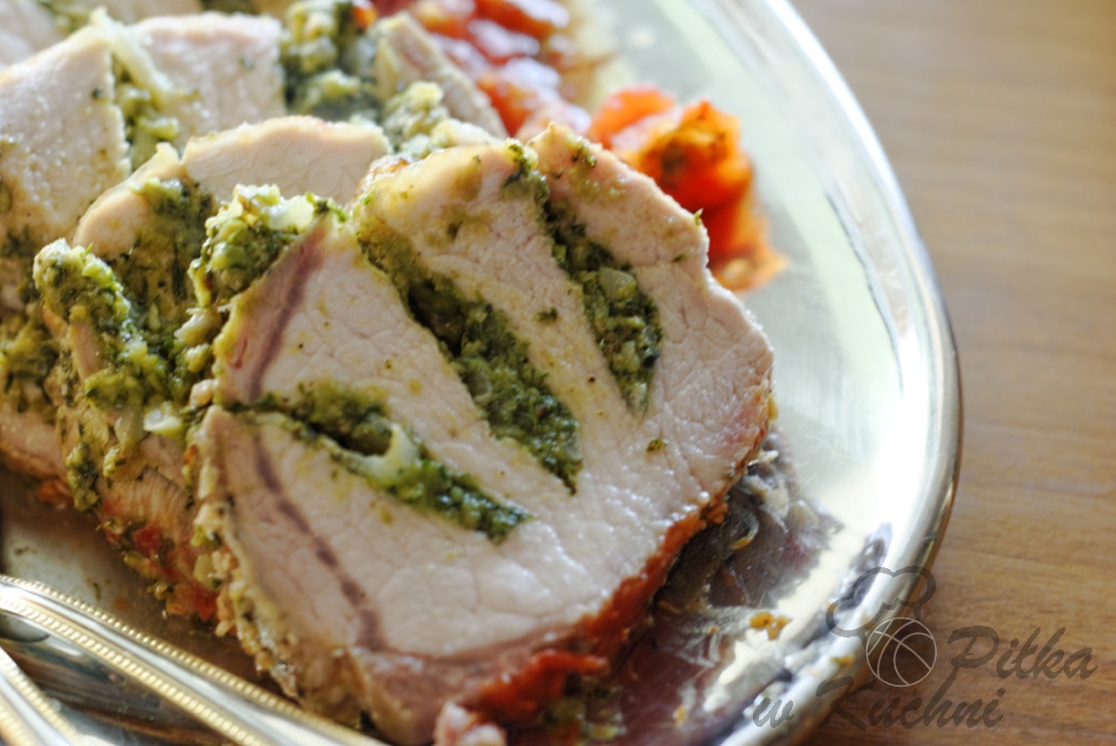 Przyprawienie mięsa świeżymi ziołami rosnącymi w ogródku albo kupionymi w doniczce to świetny pomysł! Takie dania mają intensywny aromat, wyjątkowy smak, cudny wygląd... Schab nadziany bazyliowym pesto upieczony na pomidorach jest świetną propozycją na obiad rodzinny, świąteczny... Spróbujcie!