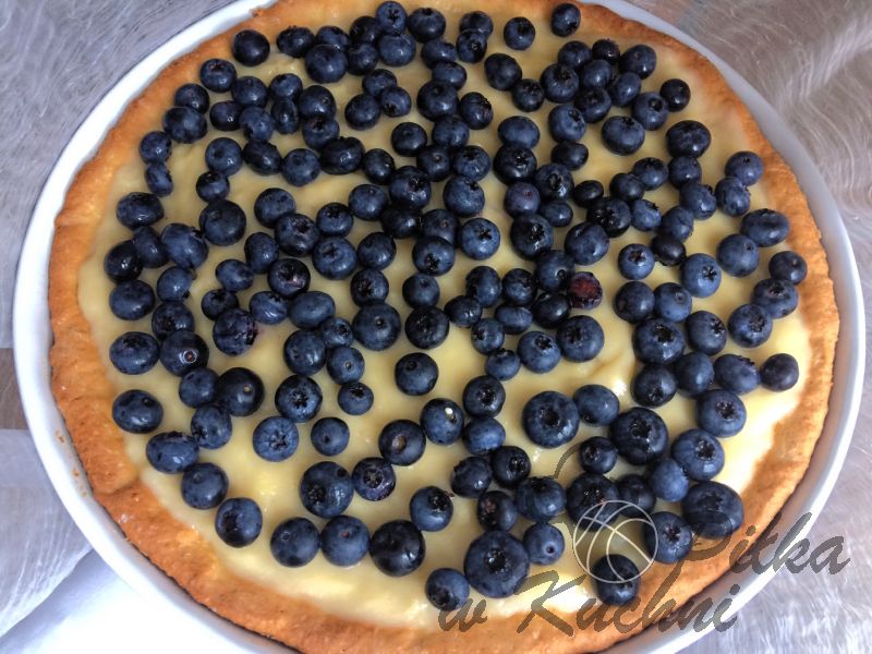 Ciepły krem wylej na przestudzony spód tarty, udekoruj borówkami i pozostaw do ostygnięcia.