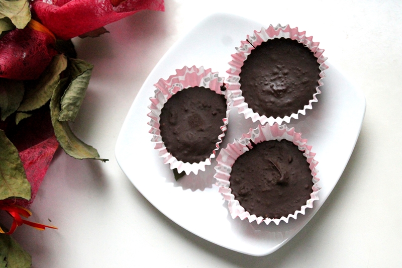Czekoladę rozpuszczam w kąpieli wodnej lub mikrofali (nie polecam, spaliłam w ten sposób połowę tego składnika). Do foremek na babeczki wylewam pół rozpuszczonej czekolady, wstawiam do zamrażalki na około 5 minut. Później w ten sam sposób - co czekoladę - podgrzewam masło orzechowe i wylewam ją na zastygłą część wyjętą z zamrażalki. Ponownie wkładam na kilka minut do chłodnego miejsca, aby przysmak zrobił się twardy, po czym wylewam resztę czekolady. Odkładam na kilka minut i.. gotowe. Można się zajadać! :)