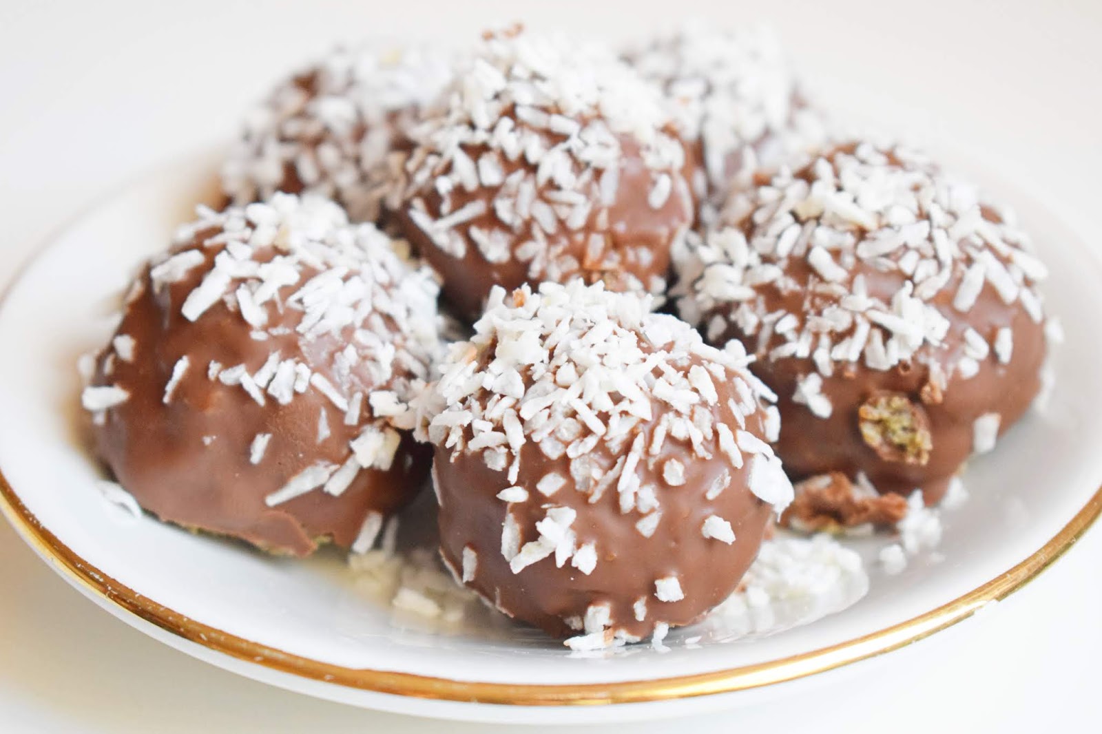 - Kulki zatapiaj w czekoladzie i obsyp z wierzchu wiórkami kokosowymi.