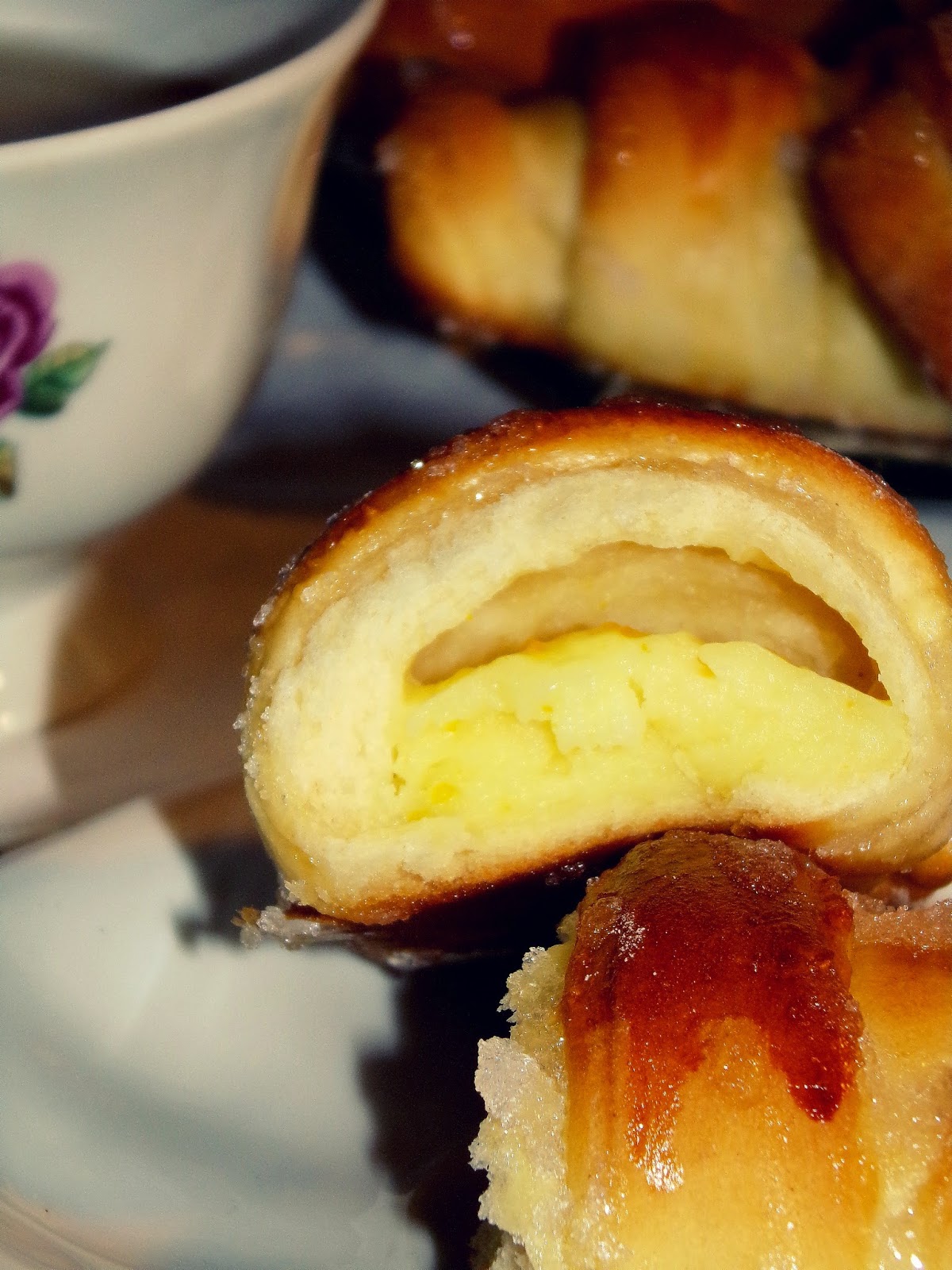 Takie oto smakowitości tworzy się mimo choróbska. Chyba jeszcze zima się nie skończyła, a na chłodne wieczory polecam drożdżowe bułeczki z budyniem śmietankowym z nutą pomarańczową. Delikatne i nie bardzo słodkie (no dobra, to wersja bez lukru). :)