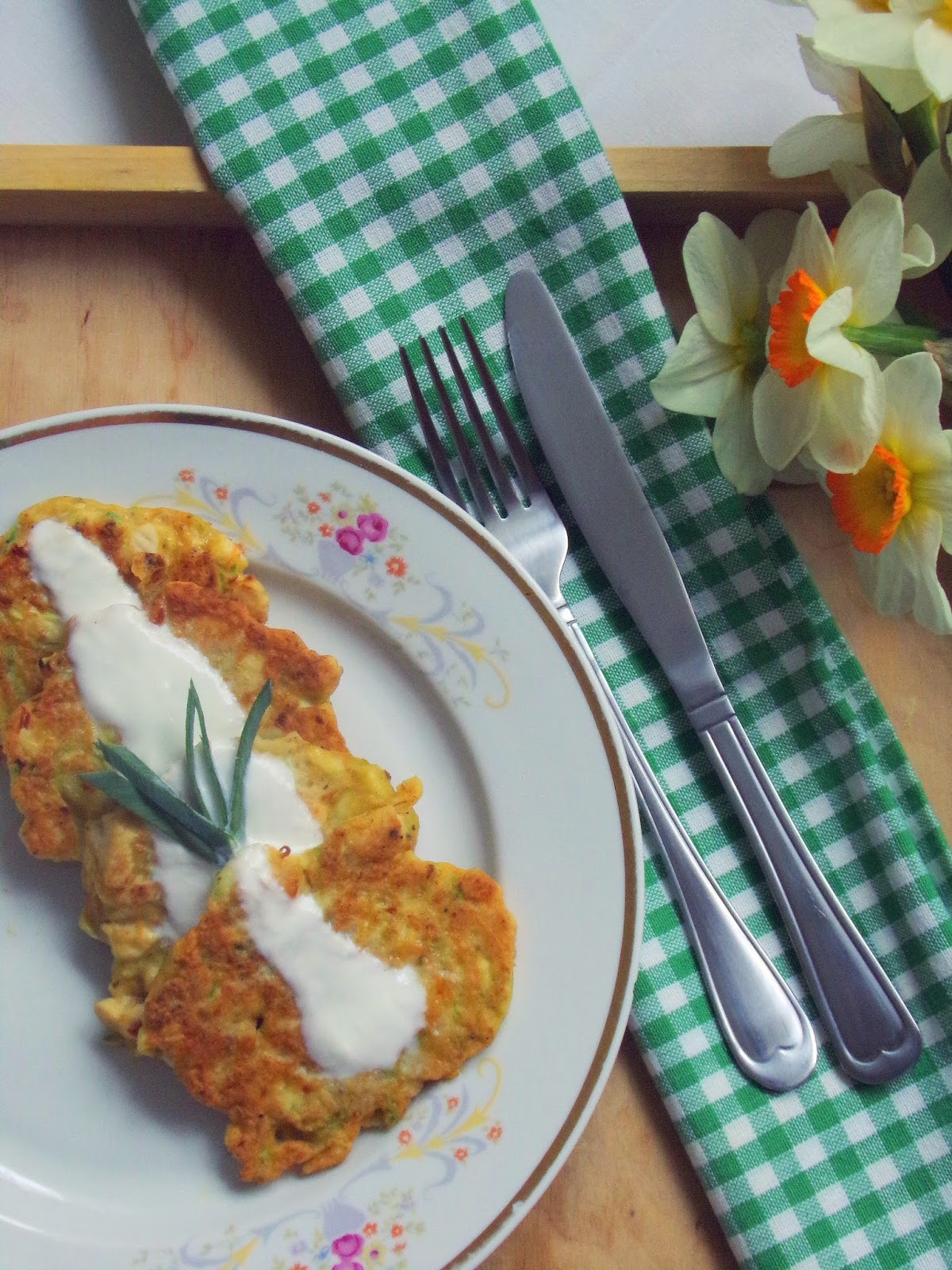 Wiosna za pasem, choć pogoda płata nam figle. Jednak jedną z tych pozytywnych rzeczy jakie przynosi nam ta pora roku są warzywa, po które rzadziej sięgamy zimą. Wczoraj będąc na zakupach dorwałam cukinie - zieloniutka i nieprzerośnięta, taka jak lubię. A dziś przyszedł pomyśl co z niej przyrządzić. Padło na szybkie i naprawdę łatwe placuszki z dodatkiem marchewki i piersi z kurczaka, przyprawione aromatycznym oregano i bazylią. Na zimno smakują równie dobrze :) Polecam zrobić je np. na drugie śniadanie do pracy lub szkoły.