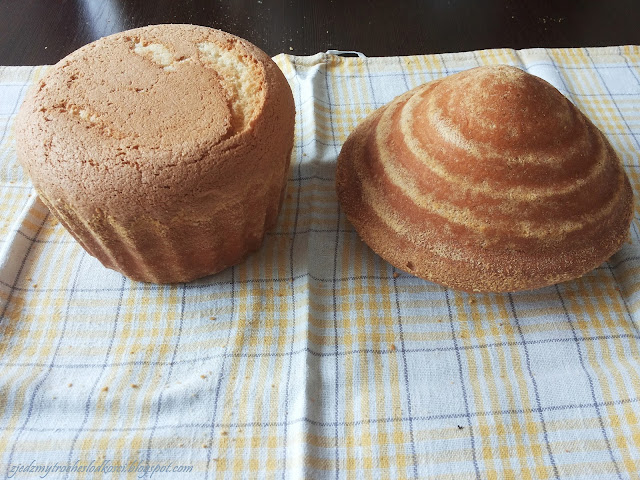 3. Przelać do 2 okrągłych form (góra i dół babeczki), piec w piekarniku nagrzanym do 180 stopni przez 30-35 min.