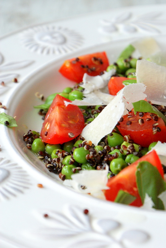 Ugotowany odcedź i dodaj trochę masła lub oliwę, posól. Wymieszaj komosę z groszkiem.