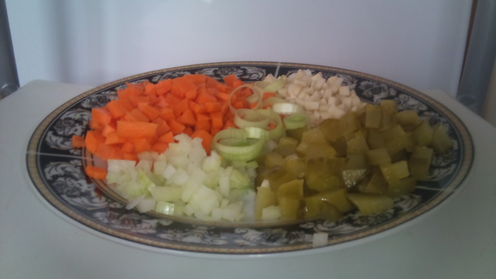 Cebula / por nadaje mięsu ostrości, marchew, pietrucha i ogórek "słodkości" - mięso jest delikatniejsze w smaku i bardziej kruche.