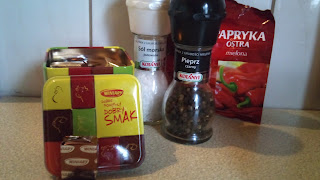 Mięso obsypuję pieprzem, solą i papryką. Tu naprawdę nić więcej nie potrzeba :)