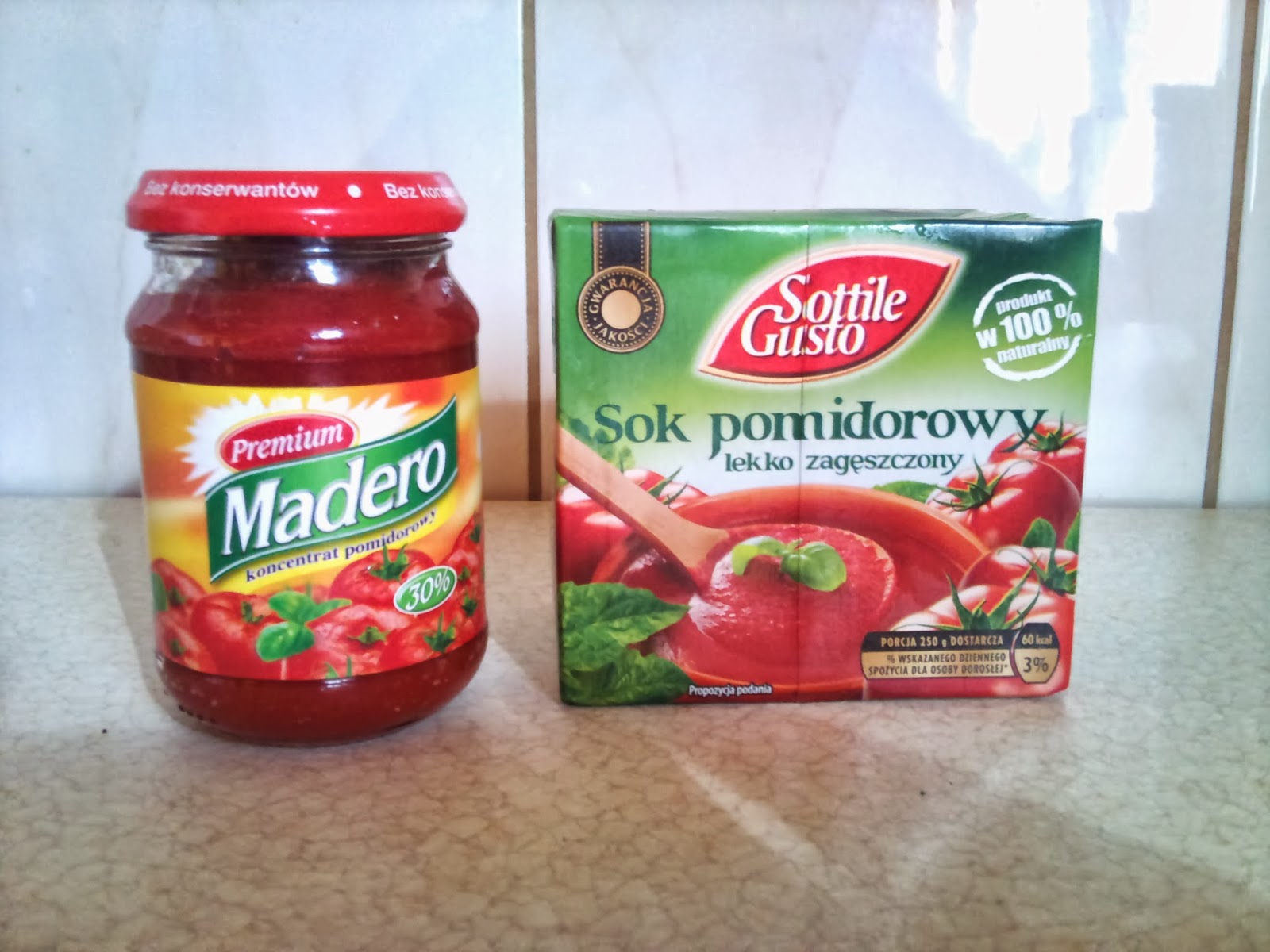 Ja oprócz przecieru dodaję też zagęszczony sok pomidorowy. Dostępny w biedronce za niewielką cenę, a daje troszkę inny smak niż przecier.